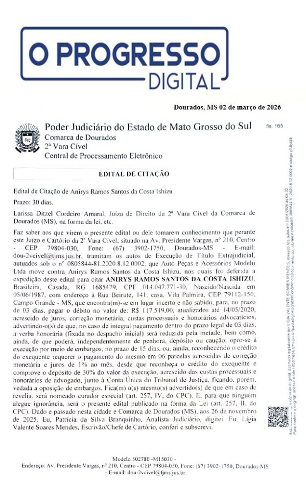 EDITAL DE CITAÇÃO – AUTO PEÇAS MODELO – 02-03-26