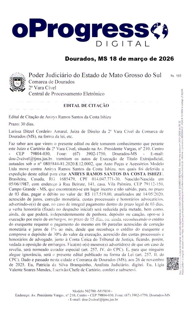 Início Editais EDITAL DE CITAÇÃO – AUTO PEÇAS MODELO – 18-03-26 EDITAL DE CITAÇÃO – AUTO PEÇAS MODELO – 18-03-26 18 de março de 2026