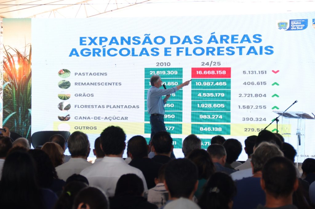 O tema foi abordado pelo secretário Jaime Verruck na abertura da ExpoRibas 2026. Segundo ele, o Estado transformou áreas de pastagens em lavouras, florestas e cana, aliando crescimento e preservação, com 38% do território mantido com vegetação nativa.