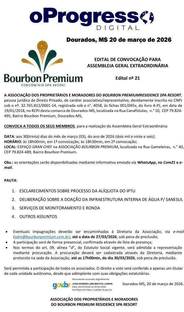 Início Editais EDITAL DE CONVOCACÃO AO – 21 – BOURBON PREMIUM -20-03-26