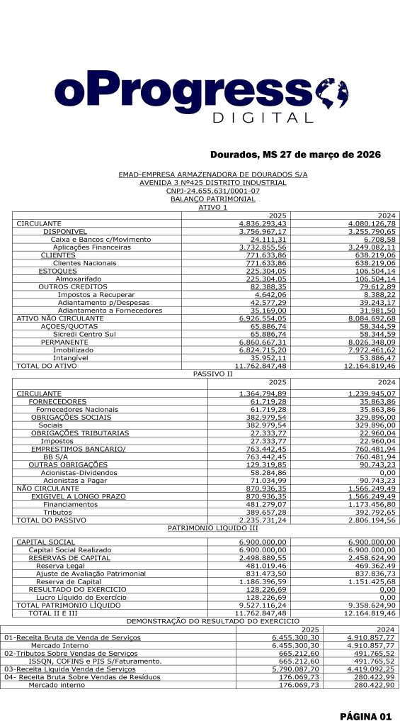 Início Editais BALANÇO PATRIMONIAL – EMAD 27-03-26 BALANÇO PATRIMONIAL – EMAD 27-03-26 27 de março de 2026