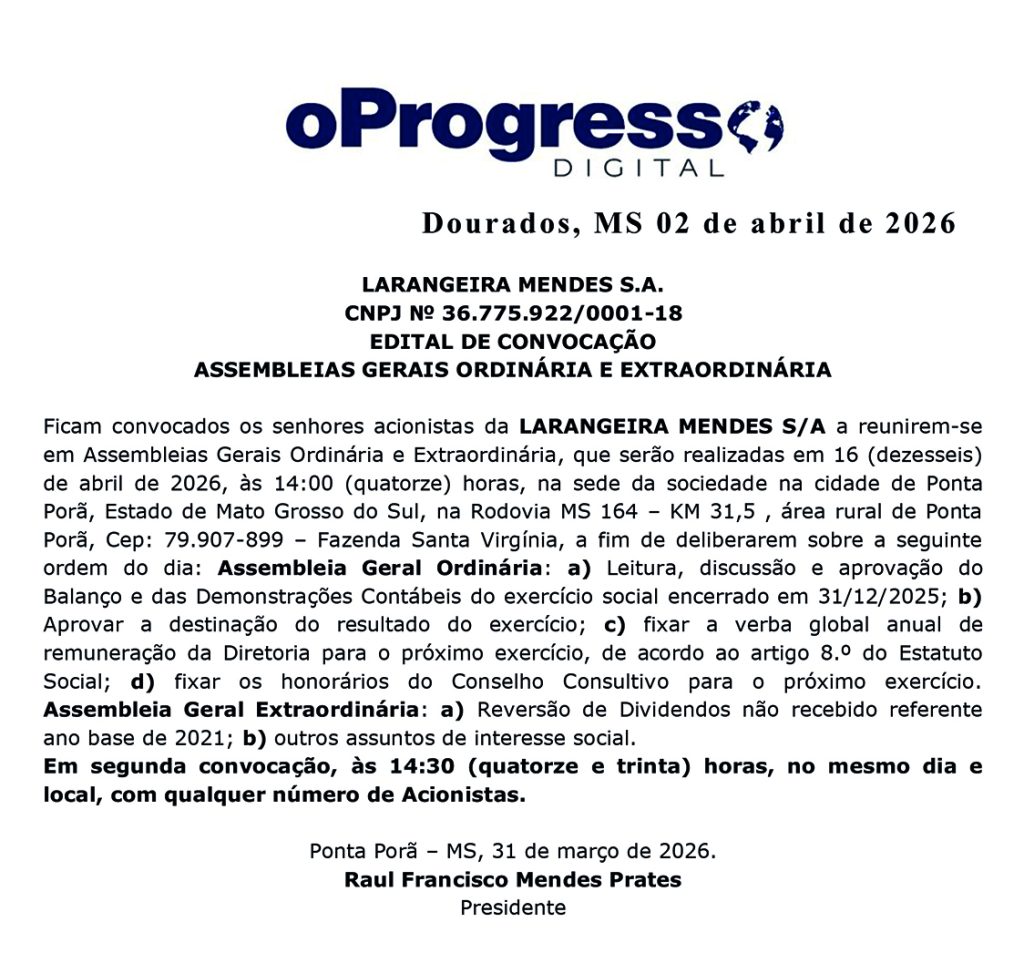 Início Editais EDITAL DE CONVOCAÇÃO – LARANGEIRA MENDES – 02-04-26 EDITAL DE CONVOCAÇÃO – LARANGEIRA MENDES – 02-04-26 2 de abril de 2026