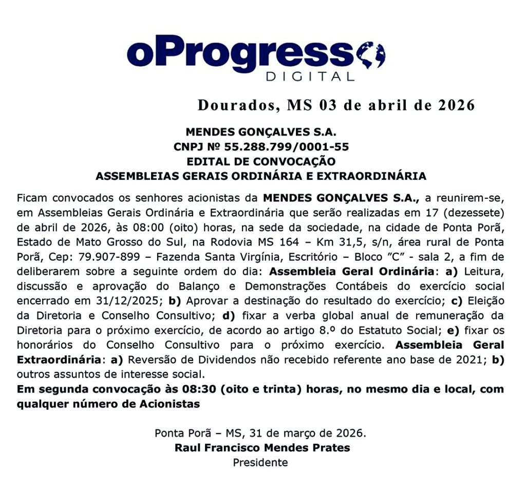 Início Editais EDITAL DE CONVOCAÇÃO – MENDES GONÇALVES – 03-04-26 EDITAL DE CONVOCAÇÃO – MENDES GONÇALVES – 03-04-26 3 de abril de 2026