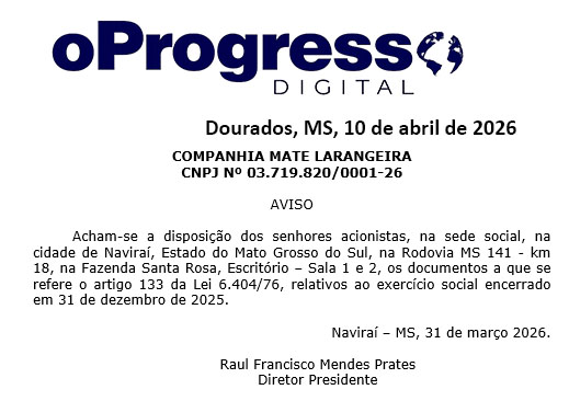 Início Editais Aviso – Companhia Mate Laranjeira – 10-04-26 Aviso – Companhia Mate Laranjeira – 10-04-26 10 de abril de 2026
