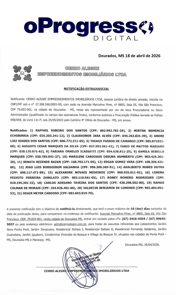 Início Editais NOTIFICAÇÃO EXTRAJUDICIAL – CERRO ALEGRE -18-04-26 NOTIFICAÇÃO EXTRAJUDICIAL – CERRO ALEGRE -18-04-26 18 de abril de 2026